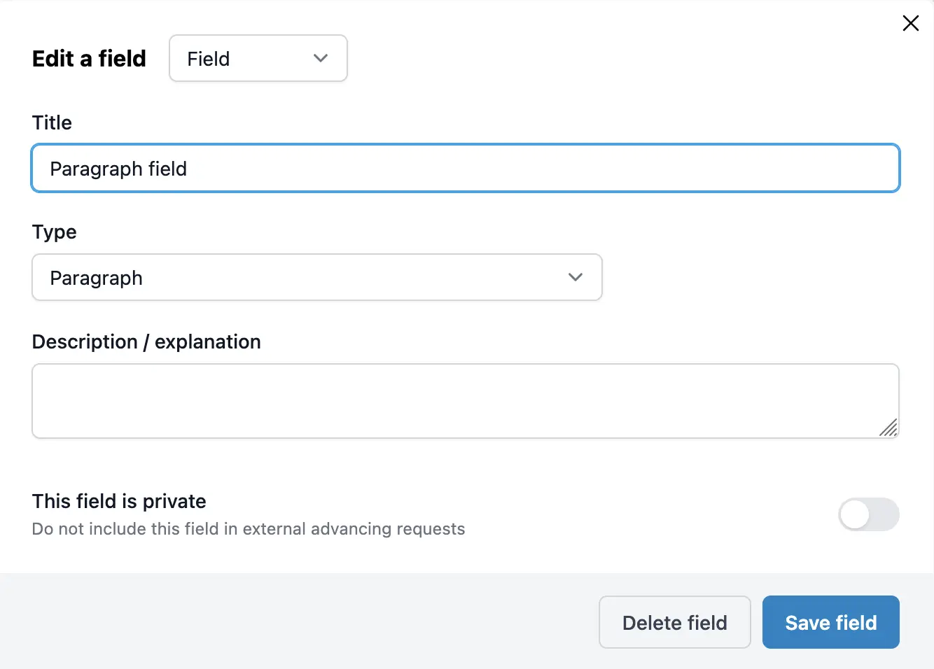 - Paragraph: For longer descriptions.