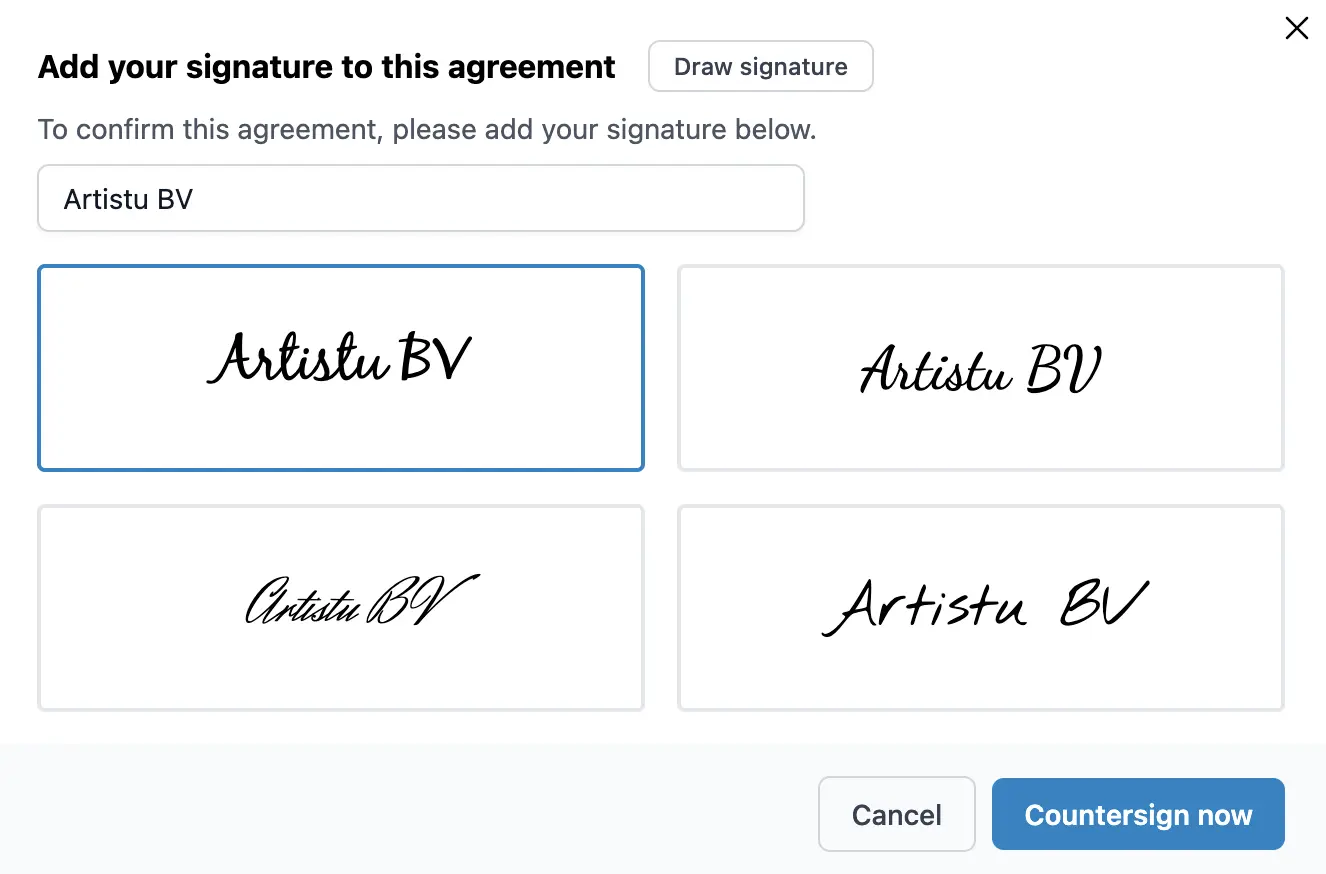 You can now review the signed agreement and add your own countersignature directly from the dashboard.